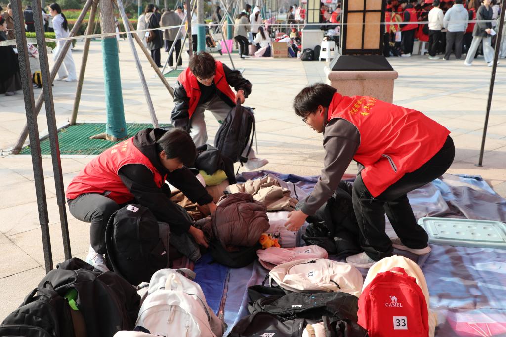 清晨7时,太阳成集团tyc122cc党总支副书记余湾、团总支书记张佳带领员工志愿者提前到岗,有序引导考生寄存书包、手机等非考试用品。工作中,志愿者们严格执行核对信息、贴签保管等流程,耐心解答考生疑问,以细致高效的服务帮助考生,确保考生能够以最佳状态从容应考。