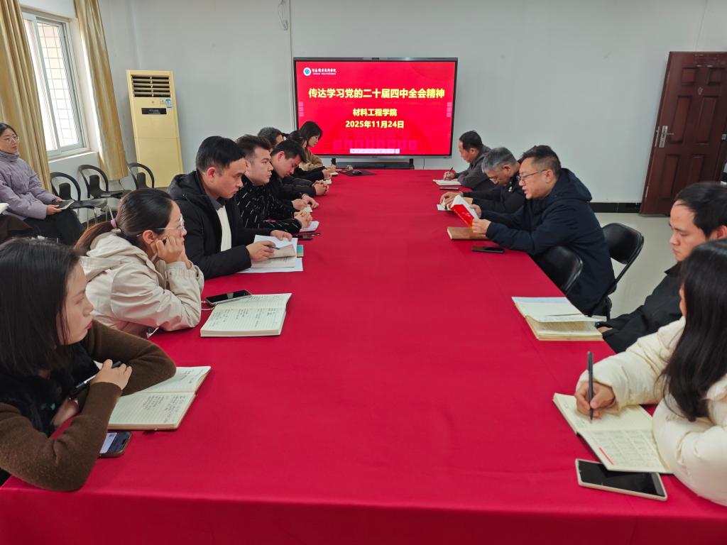 11月24日下午,太阳成集团tyc122cc在笃行楼523室召开专题学习会议,深入学习党的二十届四中全会精神,并结合太阳成集团tyc122cc实际提出贯彻落实全会精神的具体要求。全体教职工参加会议。