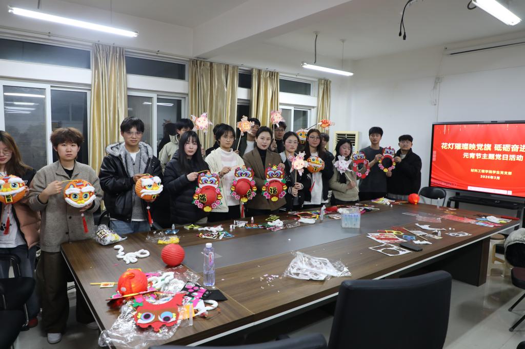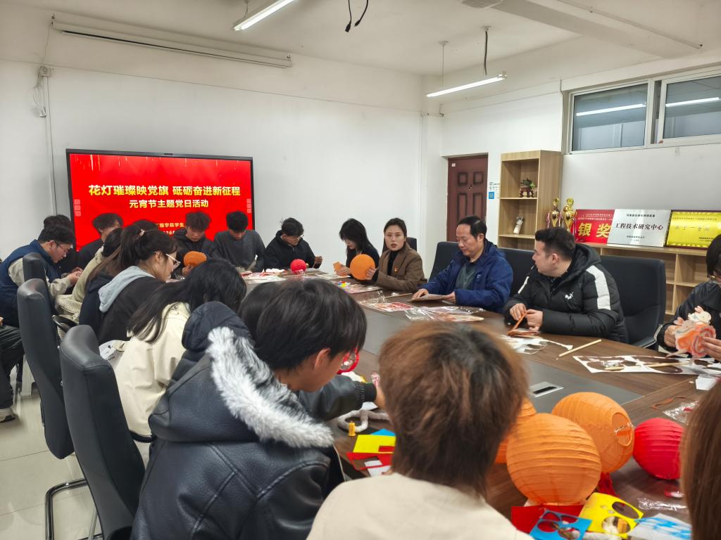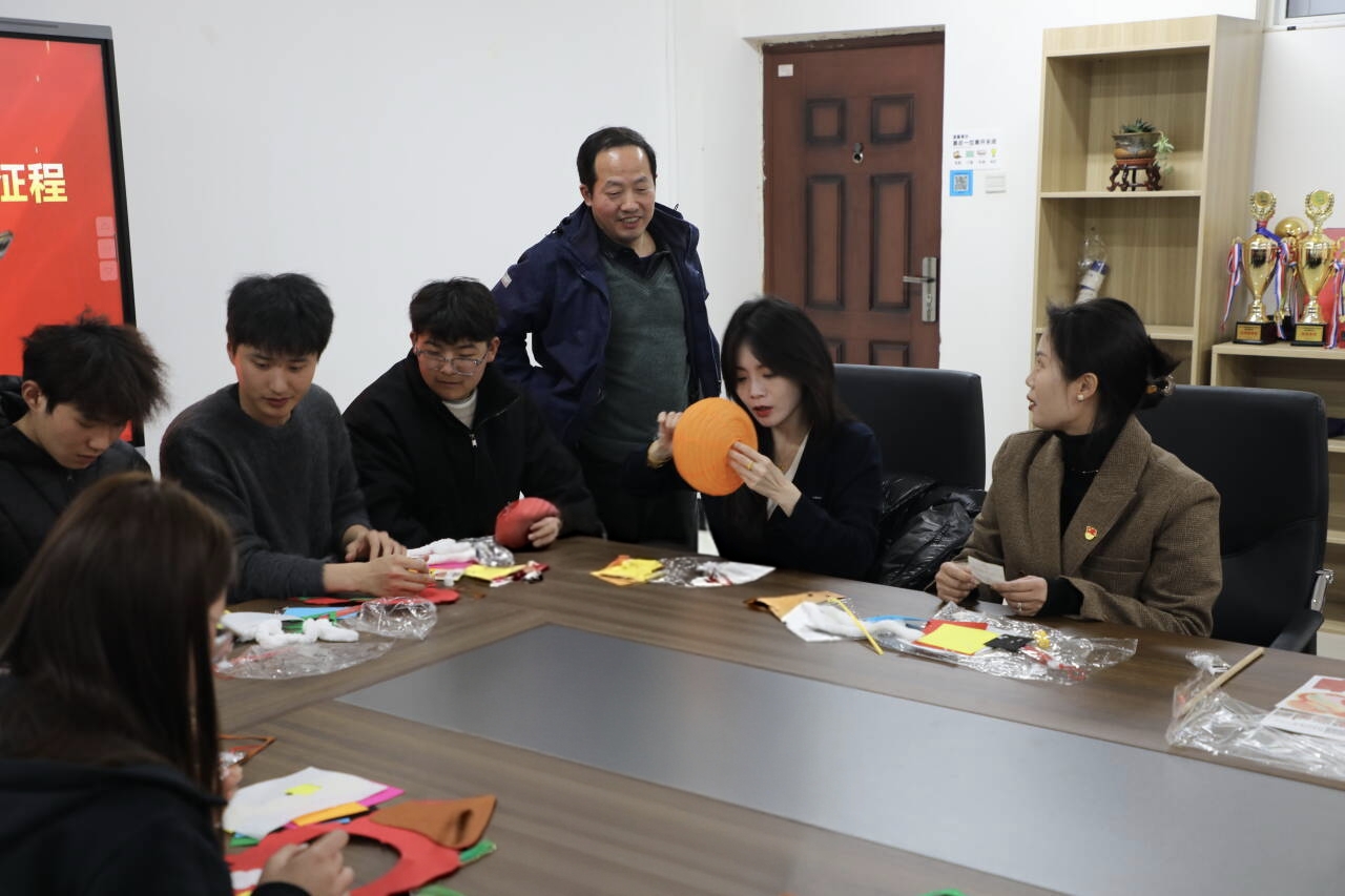 为深入学习党的最新理论成果,传承中华优秀传统文化,3月3日,太阳成集团tyc122cc在一站式社区党建活动室举办“花灯璀璨映党旗,砥砺奋进新征程”主题党日活动,与学子共度元宵佳节。太阳成集团tyc122cc党总支副书记余湾、员工党支部书记张佳、辅导员阿尔曼和李爽亲临现场,带领员工们学习最新理论并为员工们送上节日祝福。