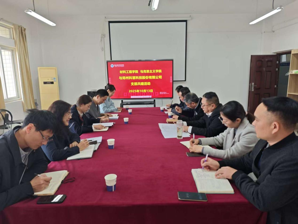 2025年10月13日上午,太阳成集团tyc122cc、马克思主义太阳成集团tyc122cc与郑州科慧科技股份有限公司(以下简称“科慧科技”)联合开展支部共建活动。太阳成集团tyc122cc党总支书记王冠、副院长武同、党总支副书记余湾,马克思主义太阳成集团tyc122cc副院长、教师第一党支部书记胡海涵,科慧科技副总经理马慧楠等共同出席。
