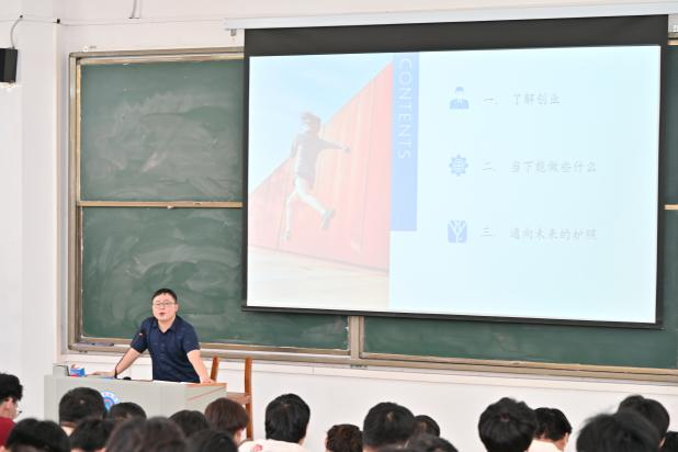 优秀校友陈龙作为主讲嘉宾,分享了其创办企业的奋斗历程。在校期间即开启创业之路,2018年通过家政服务实现学费生活费自理,同年创立公司。面对2019年底突发的经营困境,他带领团队坚定信念,突破创新,将公司从单一清洁服务拓展至批发零售、3D打印、装饰装修等多领域,形成12人专业团队。关于创业,他的感悟是“越努力,越幸运”,不怕困难,勇于创新,成功在于一步步坚持;他特别强调"目标导向、团队协作"的重要性,用"创业就是不断解决问题的过程"激励在场学子。