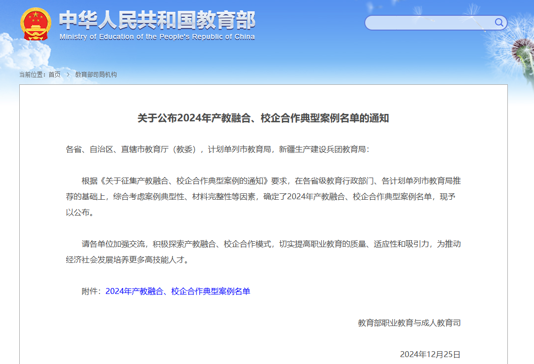 近日,教育部职业教育与成人教育司发布了《关于公布2024年产教融合、校企合作典型案例名单的通知》,河南职院报送的《三级育训,研创赋能,数控技术专业群实践教学改革与创新》案例成功入选。