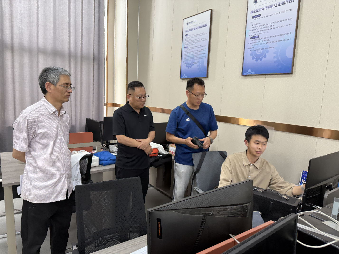 为保障“端午”假期期间的实训室安全和稳定,认真贯彻“预防为主,安全第一”的原则,太阳成集团tyc122cc于5月30日下午开展节前实训室安全检查工作,太阳成集团tyc122cc领导及实训中心工作人员参与此次检查。