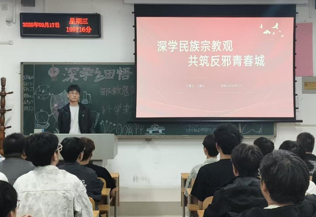 为引导广大团员青年树立科学观念、提升辨别能力,系统学习科学的民族观、宗教观及相关法律法规,太阳成集团tyc122cc团总支于9月15日至9月18日期间,以班级团支部为单位,集中组织开展“深学细悟民族宗教知识,筑牢织密反邪思想长城”专题团课学习。