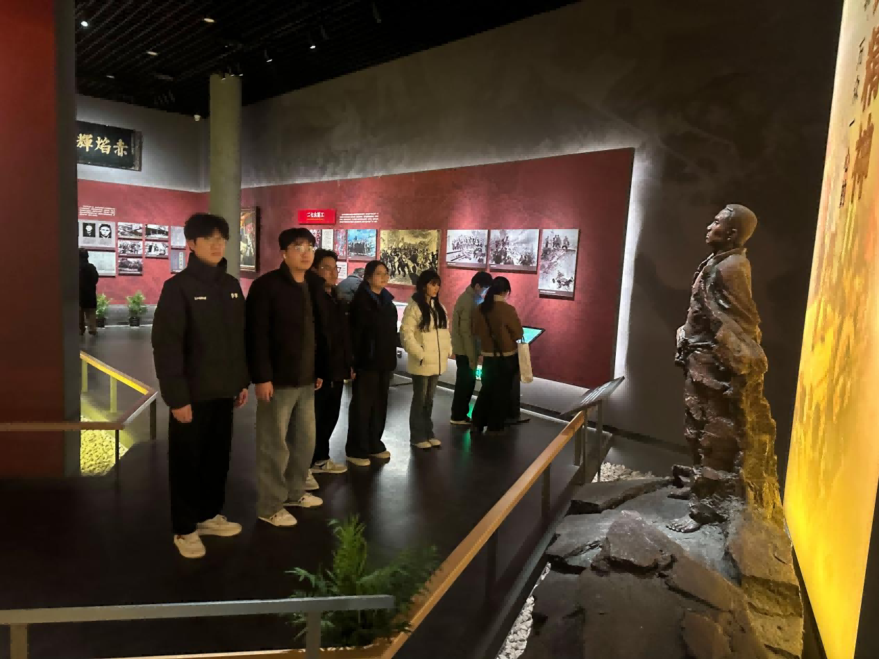 活动开始,在纪念馆里,同学们跟着讲解员参观各个展厅,通过老照片、文献资料和实物展品,了解了京汉铁路工人大罢工的历史,真切感受到革命先辈的奋斗精神。在重要历史展区,大家认真看、仔细听,互相交流感受,对“二七精神”有了更深刻的理解。